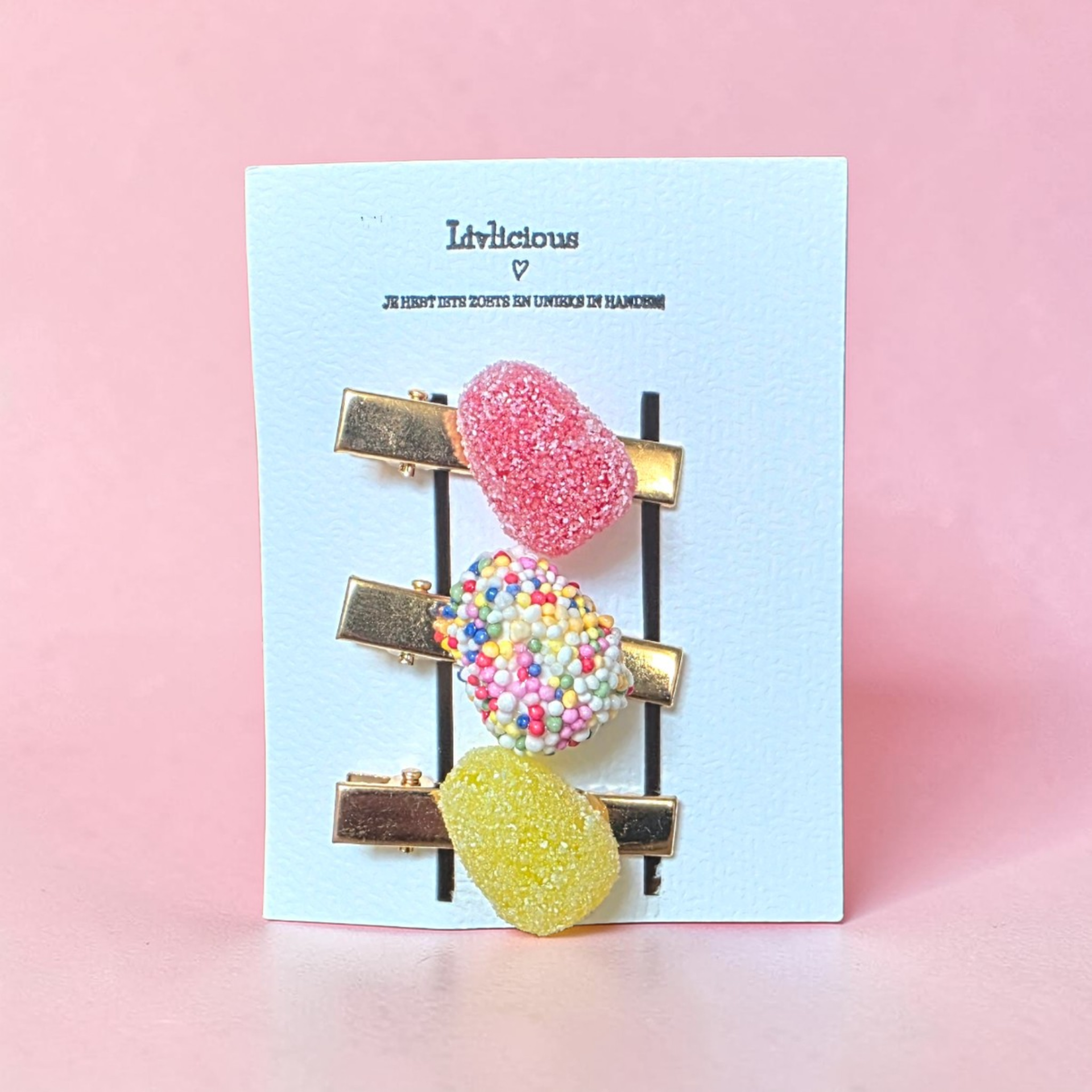 Livlicious is een vrolijke en zoete collectie van accessoires ontworpen voor meisjes. Ook voor mama’s hebben we leuke accessoires, bekijk de collectie pin broches eens en je bent helemaal verkocht. De accessoires zijn met veel zorg gemaakt van polymeer klei, wij proberen de zoetigheden zo exact mogelijk na te maken. Hierdoor zien ze er soms wel heel verleidelijk uit om op te eten. Daarom raden wij aan om onze producten buiten het bereik te houden van kinderen onder de drie jaar of kinderen die nog graag iets in hun mond stoppen. Volg ons, Livlicious, op facebook of instagram en blijf op de hoogte van onze collectie, nieuwtjes en aanbiedingen. Liefs, Joyce